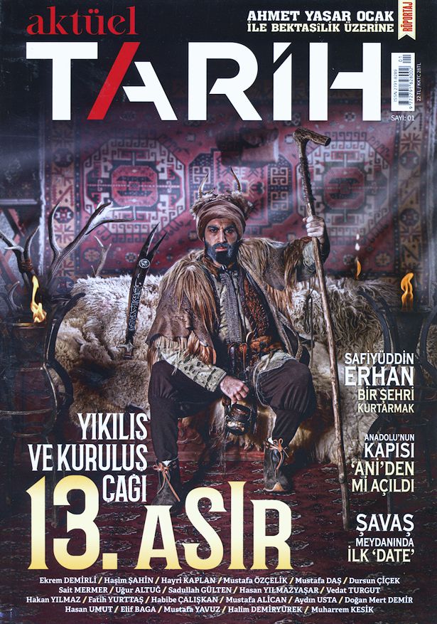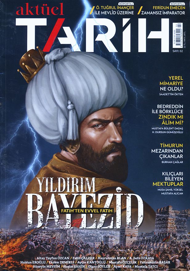 Aktüel Tarih Sayı: 01 Aralık 2021 196 sayfa YAZAR - MAKALESayfa Prof. Dr. Ekrem Demirli İslam'ın İkinci Klasik Çağı8-11 Mustafa Akar Bulgur Pilavı, Mesnevî ve Mevlîd12 Sait Mermer Sezai Karakoç'un Tarih Felsefesi Bağlamında 13. Yüzyıl - Kur'an Ordusunu Başkente Götüren Kumandan16-21 Röportaj: Mehmet Hakan Kekeç Hayri Kaplan: Halil İnalcık; Mikail Bayram'ın Kurbanı Oldu22-28 Prof. Dr. Mustafa Alican Barbarları Beklerken30-34 Hakan Yılmaz Babaîler - İsyan ve Kuruluş36-48 Mustafa Özçelik Sarı Saltık İzinde Bir Anadolu Velisi Yûnus Emre50-56 Röportaj: Mehmet Hakan Kekeç Prof. Dr. Ahmet Yaşar Ocak: Sultanzâde ve İmamzâde Hacıbektâş-ı Velî Temelsiz Bir Rivayettir56-63 Prof. Dr. Haşim Şahin Kuruluşun Hatîbi Gazilerin Manevi Babası Dursun Fakih64-67 Prof. Dr. Sadullah Gülten Kuruluş Döneminin Efsanesi Hz. Ali Kültü68-71 Gülsena Afra Ersan Kadınsız Ne Aş Olur Ne Savaş - Bâcıyân-ı Rûm Teşkilatı72-76 Doç. Dr. Uğur Altuğ Cihan İmparatorluğunun Kurucusu Osman Beg78-83 Fatih Yurttaş Kuruluş'ta Bizanslı Bir Gazieren: Mikhail Kosses84-88 Doç. Dr. Vedat Turgut Kapıların Eşiğinde Büyük Plan - Osmanlı'nın Kuruluşu90-99 Yard. Doç Dr. Hasan Yılmazyaşar Kuruluş Dönemi Osmanlı Arkeolojisi: Karacahisar Kalesi Kazıları100-107 Meşhüda Kızılöz Kökleri Keşfetmek: II. Abdülhamid'in 13. Yüzyılı108-112 Prof. Dr. Mustafa Daş Mavi Vatanın İlk Fatihleri: Denizci Türkmen Beylikleri114-119 Yunus Arslan Anadolu'da Yaşayan Bilim: Osmanlı'nın Devraldığı İlmî Gelenek120-125 Doğan Mert Demir Sivas Köle Pazarı'ndan Mısır Sultanlığına: Moğolların Kabusu Baybars126-130 Ortaçağ Anadolu'sunda Toplumsal Yaşam132-139 Br 13. Asır Alimi Nasreddin Hoca140-141 13. Yüzyıl Kronolojisi142-143 Doç. Dr. Muhammet Arslan Anadolu'nun Kapısı Ani'den mi Açıldı?144-148 Dr. Ayşe Beyza Ercan Gürcü Kraliçeler ve Anadolu Beyi Aşkları - Savaş Meydanı'nda İlk 'Date'150-154 Prof. Dr. Aydın Usta Selçuklu Türkleri ve Komnenoslar - Savaşsak da Beraberiz156-161 Ömer Kaptan Bizans'ı Yeniden Kuran İznik İmparatoru Selçuklu Generali VIII. Mıhail162-167 Prof. Dr. Muharrem Kesik Bizans Hipodromu'nda Uçan Bir Türk168-171 Dursun Çiçek Keşiş Diyarından Uludağ'ına172-175 Mehmet Serdar Bekar Oğuzların İlk Kur'ân Tercümeleri - Tengri Adıyla Başların176-179 Habibe Çalışkan 13. Yüzyıl Anadolu'sunda Bir Robotik Tasarım: Filli Su Saati180-182 Samet Altıntaş Cem Sultan mı Sultan Cem mi?184-185 2 Aktüel TarihSayı: 02Mart 2022 Aktüel Tarih Sayı: 02 Mart 2022 196 sayfa YAZAR - MAKALESayfa Röportaj: Mehmet Hakan Kekeç Prof. Dr. Hayrunnisa Alan: Rusya, Dünyaya Timur'un Armağını mı!8-10 Prof. Dr. Ekrem Demirli Osmanlı Toplumunun Razî'sı: Molla Fenarî14-16 Kitap: Birol Biçer Michel Chodkiewicz: Velâyet Mührü - İbn Arabi Öretisinde Nübüvvet ve Velâyet18 Röportaj Prof. Dr. Haşim Şahin: Yıldırım Han'a Ne Oldu?20 Mustafa Akar Ol Şârı Yıkılır Gördüm!22-24 Mustafa Özçelik Yûnus'tan Sonraki Yûnus Süleyman Çelebi26-28 Röportaj Doğukan İşler Ömer Tuğrul İnançer: Resûlullah Efendimizin Dünyaya Teşrif En Mühim hadisedir!32-45 A. Sefa Özkaya Osmanlı Klasik Döneminde Düşmanı Korkudan Bayıltan Teknoloji: Top48-60 Röportaj: Mehmet Hakan Kekeç Feridun Emecen: Fatih'ten Evvel Fatih: I. Bayezid - Zamansız mparator62-73 Mehmet Hakan Kekeç Bir Sultanı Ölümünden Tanımak: Feodalizmin Psikolojik Direnişi - Zehir ve Kemik74-81 Hakan Yılmaz Yıldırım Bâyezîd Seyyid Mahmud Hâyranî Türbesine Neden Defnedildi?82-84 Prof. Dr. Musa Şamil Yüksel Yıldırım Bayezid ile Timur'un Mektuplaşmaları - Dünya İki Hükümdara Yetecek Kadar Büyük Değildir!86-93 Prof. Dr. Mustafa Alican Ankara Savaşı'na Semerkand'dan Bakmak - Kibir ve Azametin Savaşı94-103 Prof. Dr. Altay Tayfun Özcan Seyyahların Gözüyle Timur ve Bayezid - İspanya Kralı Oğluma Sevgilerimi Göndereceğim!104-111 Dr. Fatih Çalışır Osmanlı'nın İkinci Kurucusu: Çelebi Mehmed - Dalar ve Mağaralardan Geliyorum!112-117 Samet Altıntaş Romandan Operaya: Bir Yıldırım Bayezid Tasarımı118-122 Burhan Çağlar Emir Timur'un Lanetii124-129 Olgay Söyler Gazi Sultan'ın Dervişleri: Kâzerûnîler130-135 Prof. Dr. Fahameddin Başar Fetih Öncesinde Osmanlıların İstanbul Kuşatmaları136-142 Fetret Devri'nde Musa Çelebi İstanbul'u Kuşattı143 Prof. Dr. Haldun Eroğlu Osmanlı'da Kardeş Katlinin Tarihsel Arka Planı - Atam ve Dedem Böyle Buyurdu144-148 Doç. Dr. Mustafa Bülent Dadaş Bir Fıkıh Âlimi Olarak Şeyh Bedreddin150-153 H. Dursun Gümüşoğlu Ne Zındık Ne Mülhid Büyük Bir Alimin Portresi: Börklüce Mustafa154-158 Prof. Dr. Hüseyin Mevsim Ankara Savaşı'nın Keskin Kılıcı: Bayezid'in Manevi Oğlu Sırp Despot Stefan160-165 Dr. Aysel Kaya Schliemann'ın Yunan Eşine Hediye Oldu: Troya Hazinesinin Kaçırılma Hikayesi172-177 Ayçin Kantoğlu Dante İslamı Nasıl Bilirdi?178-181 Dr. Mustafa Tatcı Akşemseddîn'in İlk Kez Yayımlanan Nutk-ı Şerif Şerhi187-194 3 Aktüel TarihSayı: 03Haziran 2022 Aktüel Tarih Sayı: 03 Haziran 2022 164 sayfa YAZAR - MAKALESayfa Röportaj: Yasemin Savcı Prof. Dr. İlber Ortaylı: Selçukîler, Türkleri Sünnîleştirdi!10-14 Prof. Dr. Haşim Şahin Sultan Alp Arslan Oğuz'un Yüreği Kınık'ın Bileği18-26 Prof. Dr. Adnan Çevik Malazgirt'i Aramak: Savaş Alanının Peşinde30-37 Dr. Ali Mıynat Alparslan'ın Sikkeleri38-40 Prof. Dr. Mustafa Alican Grebido Efsaneleri - Alparslan'ın Mezarı Malazgirt'te mi?42-48 Prof. Dr. Cihan Piyadeoğlu Malazgirt Savaşı Aslında Nerede Gerçekleşti?50-56 Murat Güzel Türk Tarihi Anadolu'ya Sığar mI?58-62 Dr. Bahattin Çatma Malazgirt Zaferi'nin İmgesi Anadolucu Türk Düşüncesi64-70 Röportaj: Mehmet Hakan Kekeç Prof. Dr. Yusuf Ayönü: Romanos Diogenis Alparslan'ın Kudretini Öngöremedi...72-83 Prof. Dr. Muharrem Kesik Hain, Esir ve Kahraman Erbasan Bey84-88