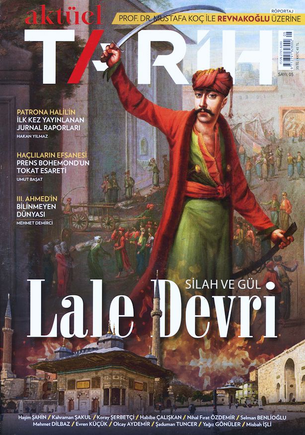 Aktüel Tarih Sayı: 05 Aralık 2022 148 sayfa YAZAR - MAKALESayfa Samet Altıntaş Eski Şiirin Rüzârı'ndaki Terkip: Lale Devri8-10 Koray Şerbetçi Alışılagelmedik Bir Sulh Devri12-16 Dilara Gürbüz Osmanlı Minyatürünün Son Temsilcisi Levnî18 Habibe Çalışkan Lady Montagu'nun Mektuplarındaki Osmanlı Panoraması20-24 Prof. Dr. Kahraman Şakul Lale Devri'nde Askerî Islahat Düşüncesi28-36 Hakan Yılmaz Patrona Halil ve Taraftarlarına İlişkin Yeni Belgeler38-41 Lale Devri'nin Jurnal Raporları42-48 Prof. Dr. Mehmet Demirci III. Ahmed'in Bilinmeyen Dünyası50-61 Dr. Selman Benlioğlu Bir Kandil Akşamı Üsküdar'dan Kanatlanan Mi'râciyye62-65 Sevim Şentürk Lale Devri'nin Sıradışı Hekimi Ömer Şifaî Efendi66-69 Doç. Dr. Evren Küçük Demirbaş Şarl'ın Türkiye'den Götürdüğü Köfteler70-71 Yasin Taçar Şiirin ve İsyanın Ortasındaki Şair: Nedim72-74 Yağız Gönüler İstanbul'un "Sâhib-i Sır" Türbedârları76-82 Röportaj Mustafa Koç ile Revnakoğlu Üzerine84-92 Mehmet Dilbaz Kaybolan Lale Devri'nin Peşinde94-97 Samet Altıntaş Kız Kulesi'nin Kara Bağlantısı lk Kez Ortaya Çıktı!98-99 Dr. Olcay Aydemr Lale Devri İstanbul'una Mekânsal Bakış100-103 Mehmet Çapkan Dr. Şaduman Tuncer: "III. Ahmed Her Ân Hâl Edilmeyi Bekledi"104-106 Umut Başat Antakya Prinkepsi Bohemond'un Tutsaklığı108-117 Prof. Dr. Haşim Şahin Lale Devri'nin Son Günü118-125 Toplam 5 fasikül