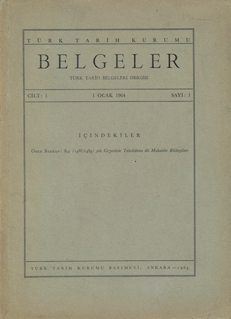 Belgeler Cilt: I Sayı: 1 1 Ocak 1964