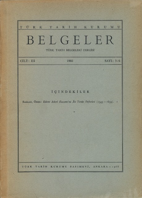 Belgeler Cilt: III Sayı: 5-6 1966