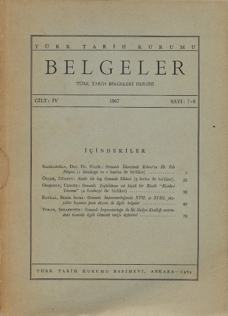 Belgeler Cilt: IV Sayı: 7-8 1967
