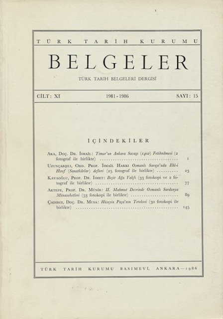 Belgeler Cilt: XI Sayı: 15 1981-1986