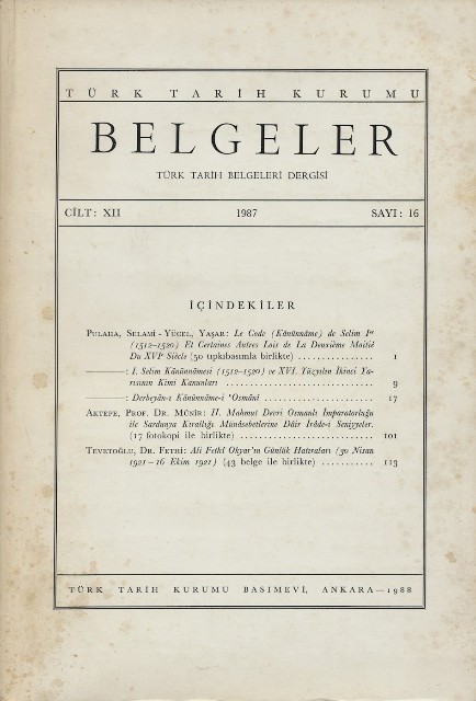 Belgeler Cilt: XII Sayı: 16 1987