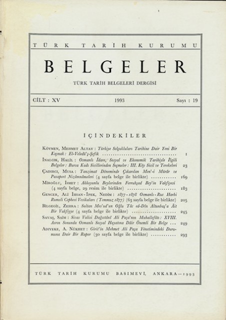 Belgeler Cilt: XV Sayı: 19 1993 315 sayfa