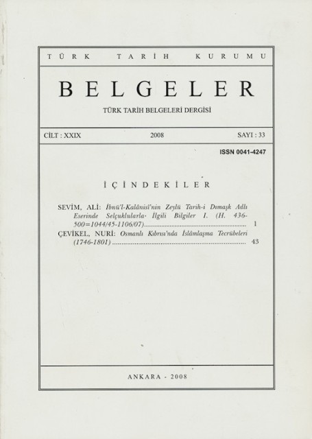 Belgeler Cilt: XXIX Sayı: 33 2008 84 sayfa