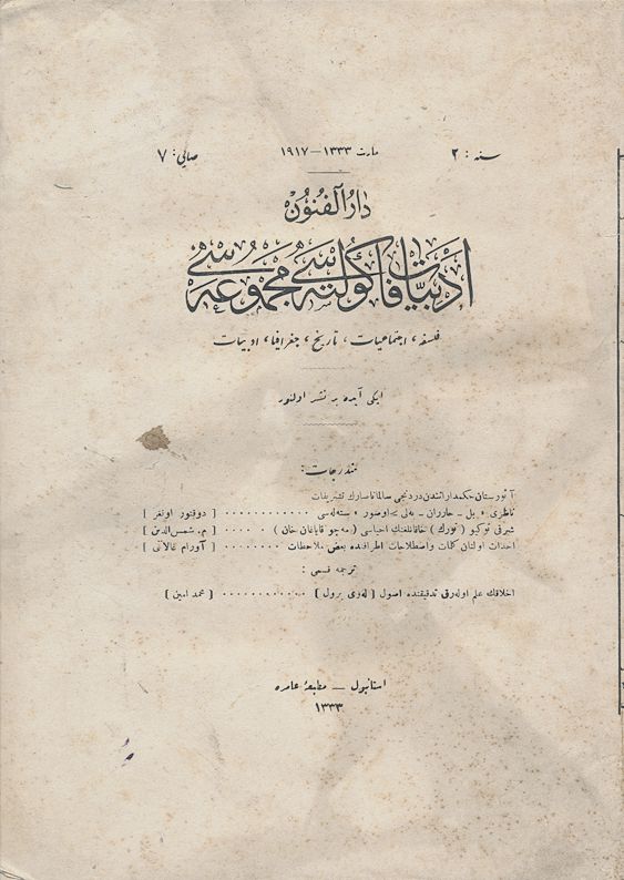 Darülfünun Edebiyat Fakültesi Mecmuası Sene 2 Sayı 7 Mart 1917 - 1333
