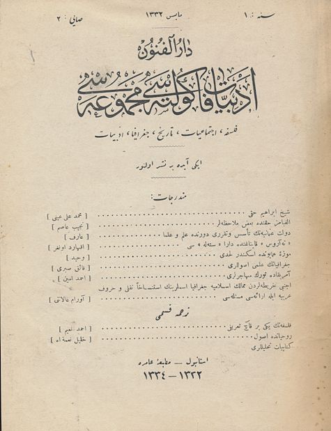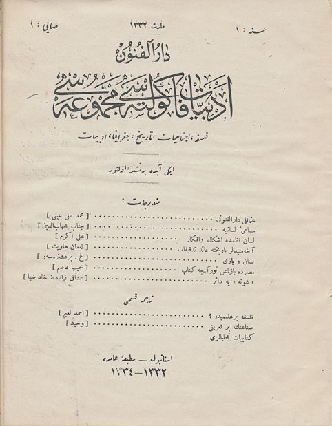 Darülfünun Edebiyat Fakültesi Mecmuası İkinci sene Sayı 1 Mart 1338