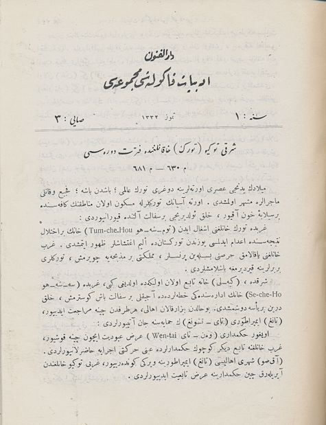 Darülfünun Edebiyat Fakültesi Mecmuası Sene 1 Sayı 3 Temmuz 1332