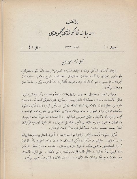 Darülfünun Edebiyat Fakültesi Mecmuası Sene 1 Sayı 4 Eylül 1332