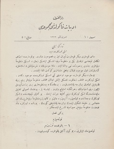 Darülfünun Edebiyat Fakültesi Mecmuası Sene 1 Sayı 5 Teşrin-i Sânî 1332