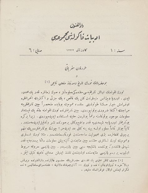 Darülfünun Edebiyat Fakültesi Mecmuası Sene 1 Sayı 6 Kânun-ı Sânî 1332