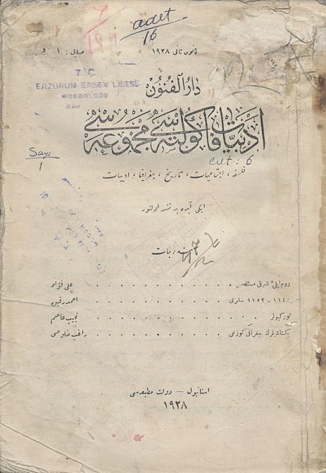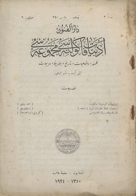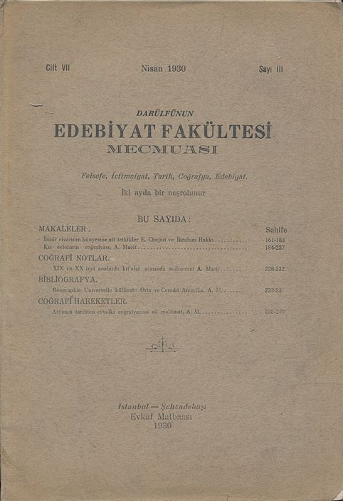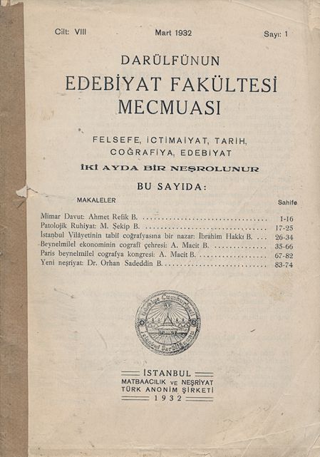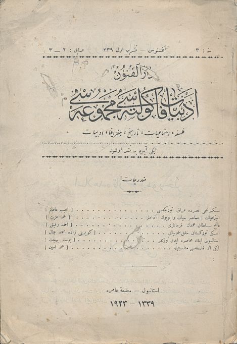 Darülfünun Edebiyat Fakültesi Mecmuası Üçüncü Sene Sayı 1 Haziran 1339