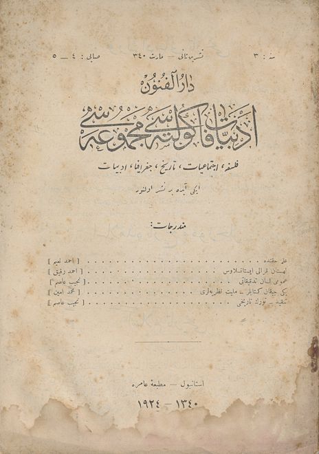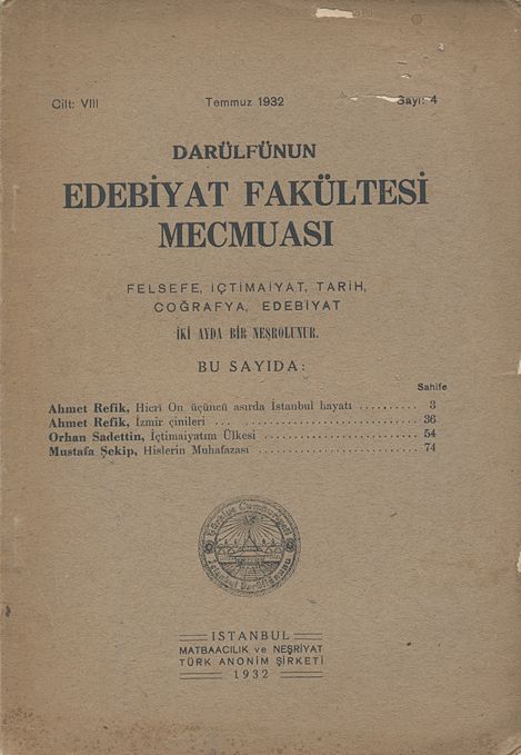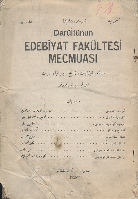 Darülfünun Edebiyat Fakültesi Mecmuası Dördüncü sene Sayı 3-4 Temmuz- Teşrin-i Evvel 1341