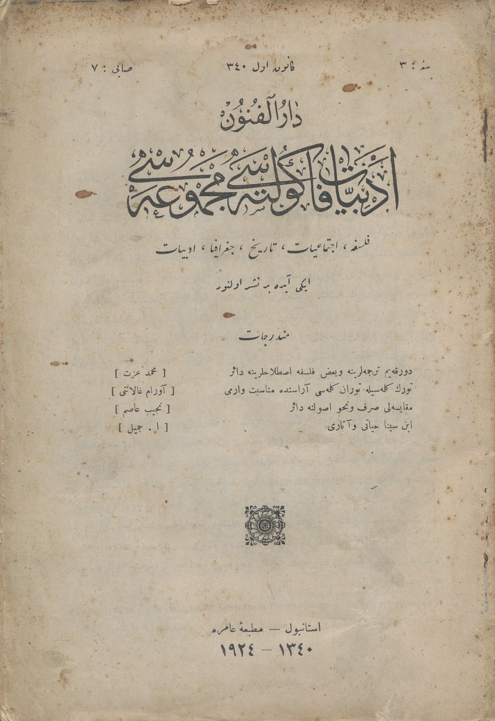 Darülfünun Edebiyat Fakültesi Mecmuası Sene 3 Sayı 7 Kânun-ı Evvel 340