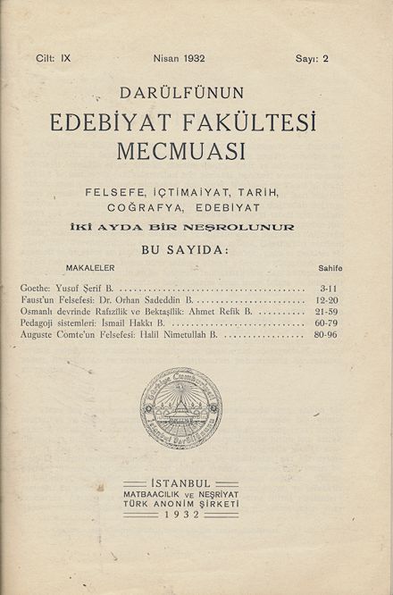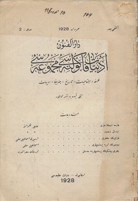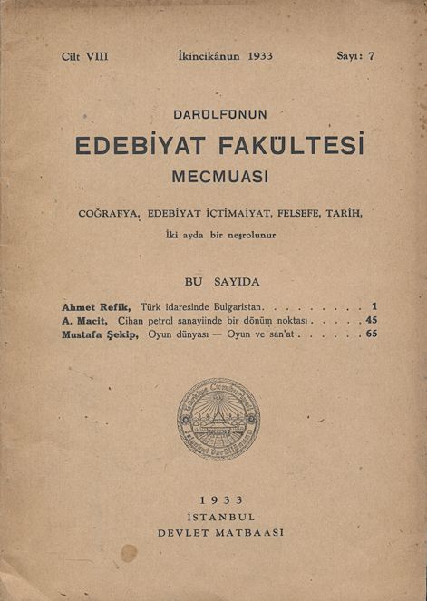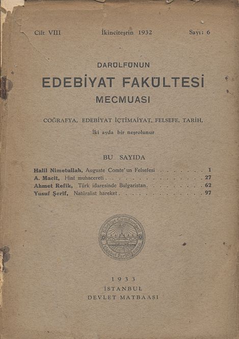 Darülfünun Edebiyat Fakültesi Mecmuası Beşinci sene Sayı 6 Temmuz - Ağustos 1927 209 sayfa 489-698. sayfalar