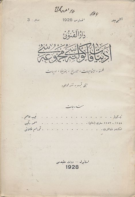 Darülfünun Edebiyat Fakültesi Mecmuası Beşinci sene Sayı 3-4 Kânun-ı Evvel - Mart 1927