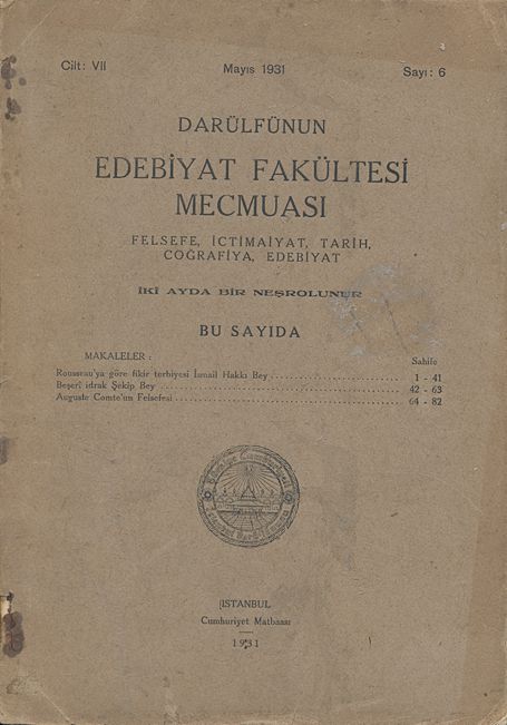Darülfünun Edebiyat Fakültesi Mecmuası Beşinci sene Sayı 6 Temmuz - Ağustos 1927