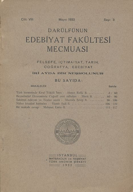 Darülfünun Edebiyat Fakültesi Mecmuası İkinci sene Sayı 3 Temmuz 1338 101 sayfa 177-278. sayfalar