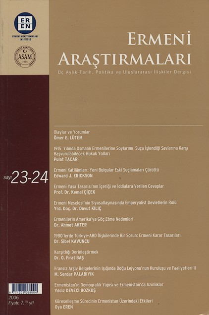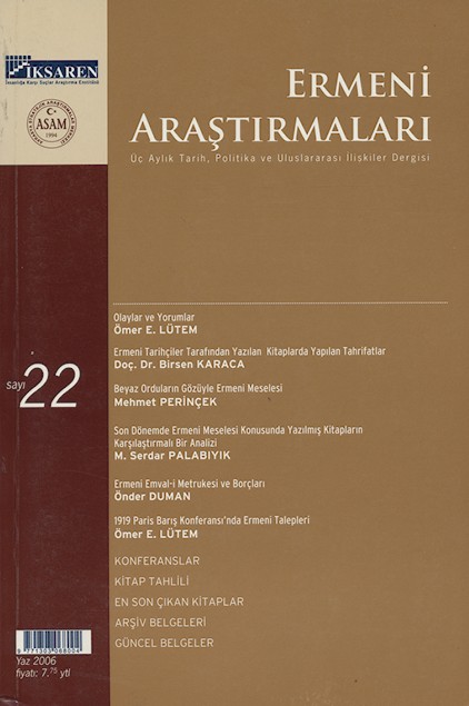 Ermeni Araştırmaları Sayı 20-21 Kış 2005-İlkbahar 2006 237 sayfa