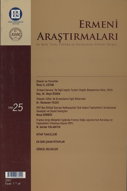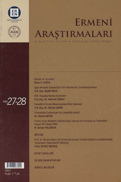 Ermeni Araştırmaları Sayı 26 Kasım 2007 216 sayfa