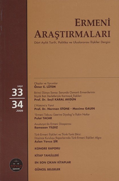 Ermeni Araştırmaları Sayı 33-34 2009 238 sayfa