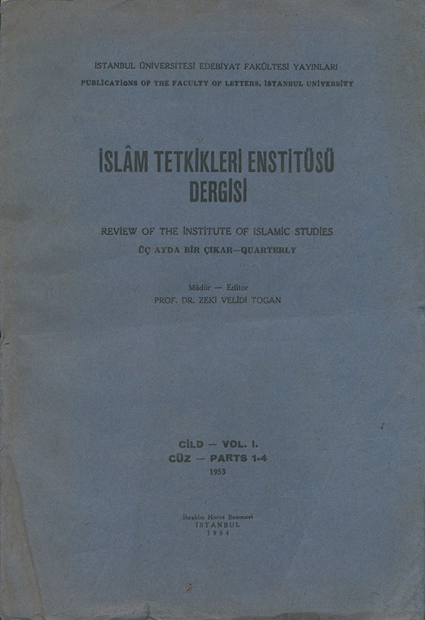 İslâm Tetkikleri Enstitüsü Dergisi Cild I. Cüz 1-4 1953
