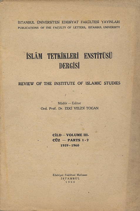 İslâm Tetkikleri Enstitüsü Dergisi Cild III. Cüz 1 - 2 1959 - 1960