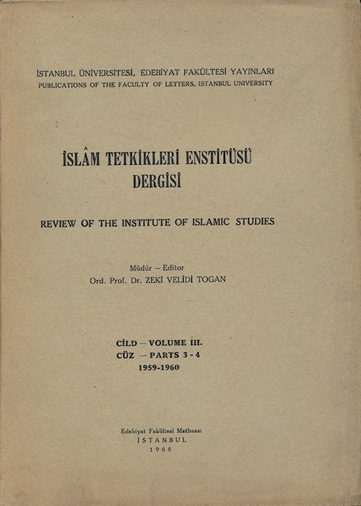İslâm Tetkikleri Enstitüsü Dergisi Cild III. Cüz 3 - 4 1959 - 1960
