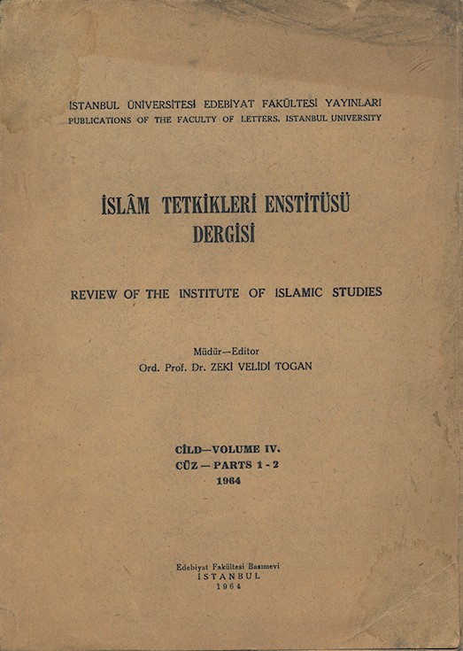 İslâm Tetkikleri Enstitüsü Dergisi Cild IV. Cüz 1 - 2 1964