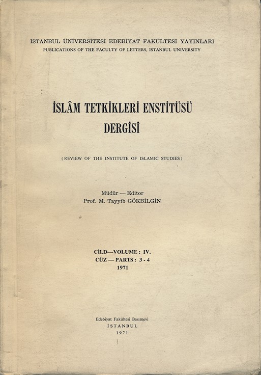 İslâm Tetkikleri Enstitüsü Dergisi Cild: IV. Cüz 3 - 4 1971