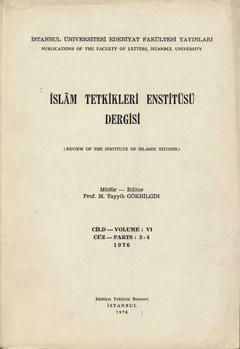 İslâm Tetkikleri Enstitüsü Dergisi Cild: VI Cüz: 3 - 4 1976