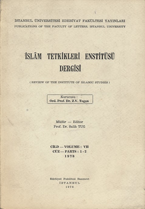 İslâm Tetkikleri Enstitüsü Dergisi Cild: VII Cüz: 1 - 2 1978