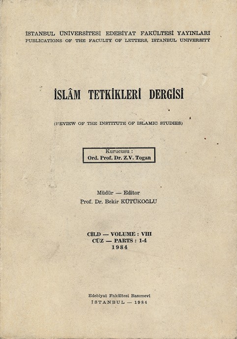 İslâm Tetkikleri Dergisi Cild: VIII Cüz: 1 - 4 1984