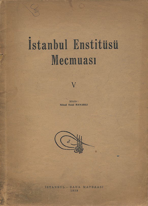 1959 İstanbul Enstitüsü Mecmuası V 1959 178 sayfa YAZAR - MAKALESayfa Toplam 5 fasikül