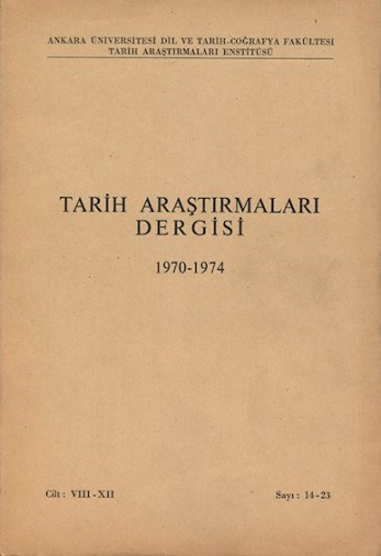Tarih Araştırmaları Dergisi Cilt: VIII - XII Sayı: 14 - 23 1970-1974