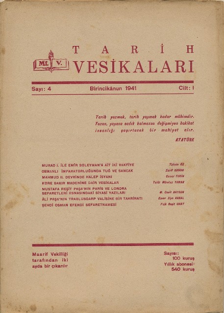 Tarih Vesikaları Cilt I Sayı 4 Birincikânun 1941
