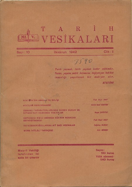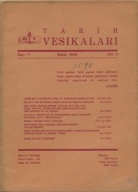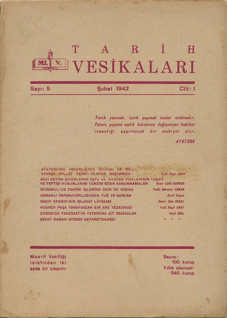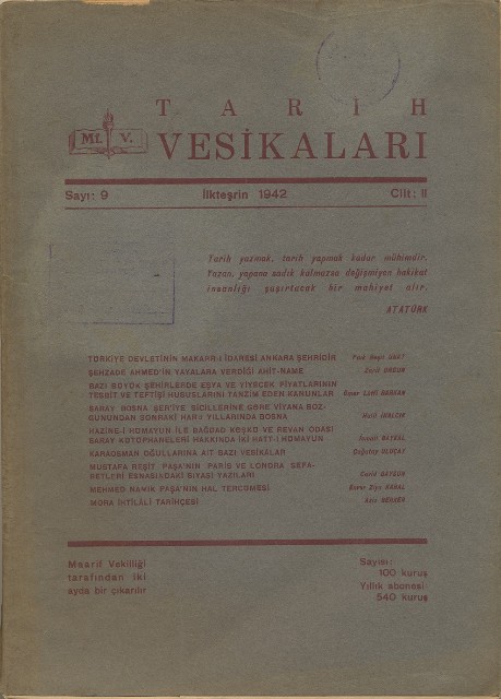 Tarih Vesikaları Cilt II Sayı 9 İlkteşrin 1942