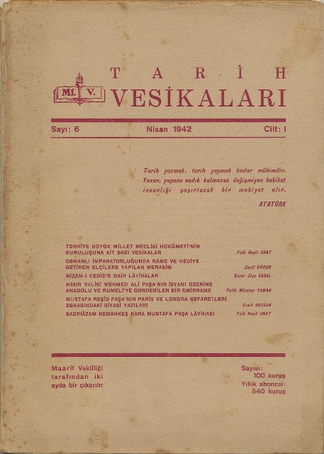 Tarih Vesikaları Cilt I Sayı 6 Nisan 1942