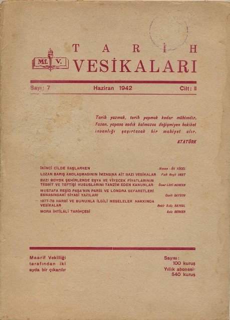 Tarih Vesikaları Cilt II Sayı 7 Haziran 1942