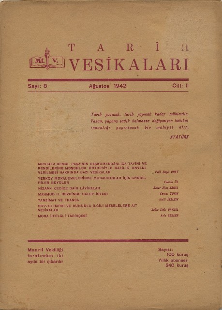 Tarih Vesikaları Cilt II Sayı 8 Ağustos 1942