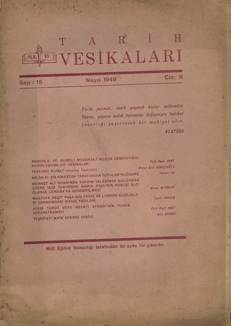 Tarih Vesikaları Cilt III Sayı 15 Mayıs 1949