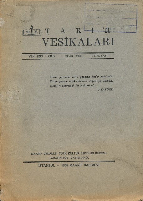 Tarih Vesikaları Yeni Seri, I. Cild 2 (17). Sayı Ocak 1958