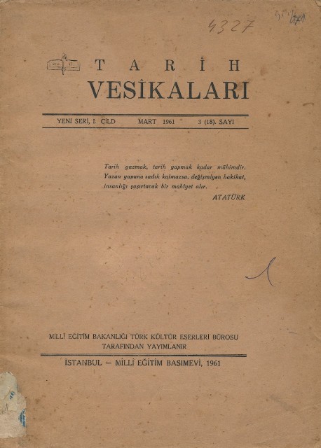 Tarih Vesikaları Yeni Seri, I. Cild 3 (18). Sayı Mart 1961
