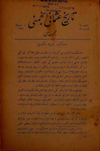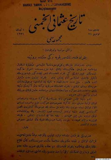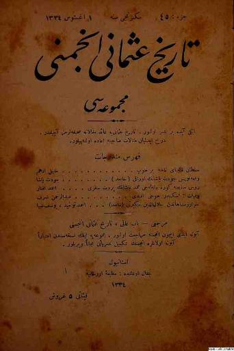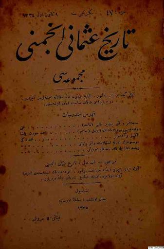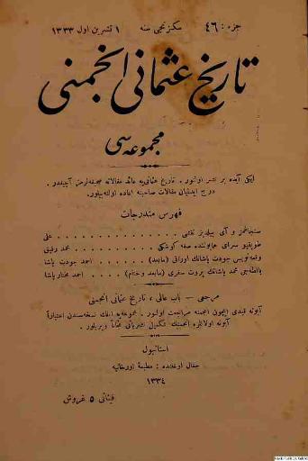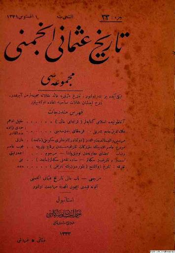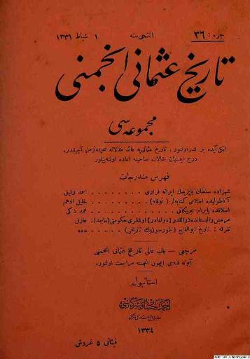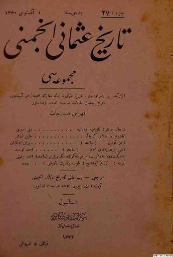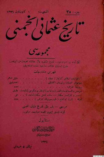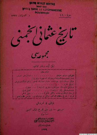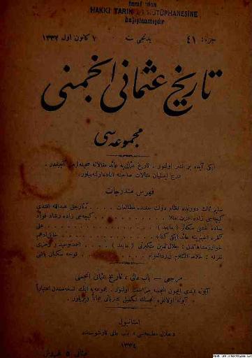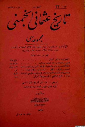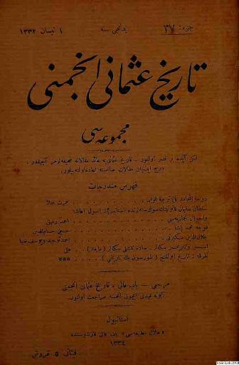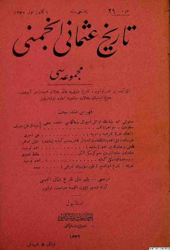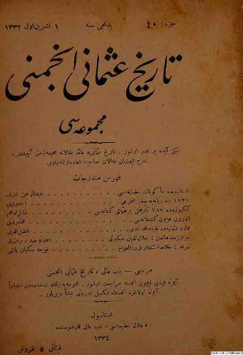 Tarih-i Osmanî Encümeni tarafından çıkarılan bu akademik dergi 1 Nisan 1326 (14 Nisan 1910)