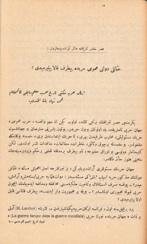 Türkiye'de yayınlanan ve Osmanlı'dan Cumhuriyet'e devredilen ilk tarih