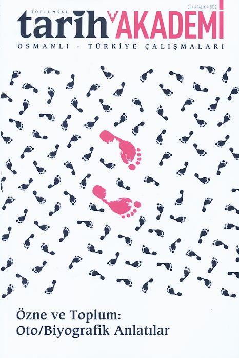 Toplumsal Tarih AkademiYıl: 1 Sayı: 1 Aralık 2022 136 sayfa YAZAR - MAKALESayfa Araştırma Makalesi Nazlı VATANSEVER Sahhaflarşeyhizade Vakanüvis Esad Efendi’nin (1789-1848) Kendi Kaleminden Oto/biyografik Metin Parçaları8-21 Denis LJULJANOVİC Geç Osmanlı Döneminde Vlora (Avlonya) Ailesi ve Vlora Ailesinin Makedonya Meselesine Dair Görüşleri (1878-1912)22-39 Abdülhamit KIRMIZI Günlükten Sonra Hayat: Bir Asker Günlüğünün Biyografiyle İlişkisi40-62 Burak ONARAN İhtilalci ve Tarih: Talât Aydemir’in Hatıratında Zaman ve Siyaset63-84 Fatma COŞKUNER Karadeniz’in Kesişen Kültürleri: İvan Konstantinoviç Ayvazovski ve Osmanlı Dünyası85-106 Görüş Makalesi Dzovinar DERDERIAN Ermenice Bir Arzuhalde Ben Anlatısı107-111 Zeynep Devrim GÜRSEL Fotoğrafın Biyografisi ve Fotoğraftakinin Biyografisi112-118 Kitap İncelemesi Hanife KARASU Aslı Niyazioğlu, Dreams and Lives in Ottoman Istanbul: A Seventeenth-Century Biographer’s Perspective119-121 Başak TUĞ ONARAN Fırat Yaşa (yay. haz.), İmparatorluğun Öteki Yüzleri: Toplumsal Hiyerarşi ve Düzen Karşısında Sıradan Hayatlar122-125 Erol KÖROĞLU Christine Philliou, Turkey: A Past Against History126-129 Toplantı Özeti Özlem ÖZDEMİR KUMBAR Osmanlı Literatüründe Ben-Anlatıları Sempozyumu Üzerine Rapor130-136 Toplam 1 fasikül