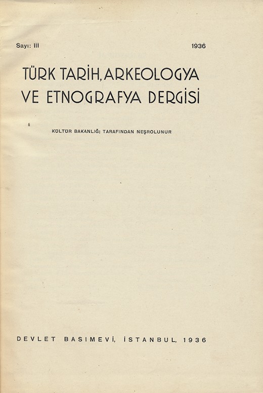Türk Tarih, Arkeologya ve Etnografya Dergisi Sayı: V Temmuz 1949 263 sayfa