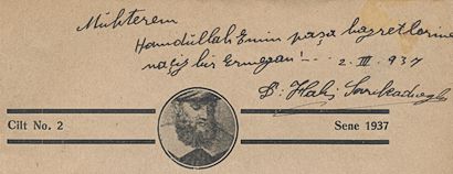 Dr. Halis Sarıkadıoğlu tarafından Hamdullah Emin Paşa hazretlerine ithaflı ve imzalı