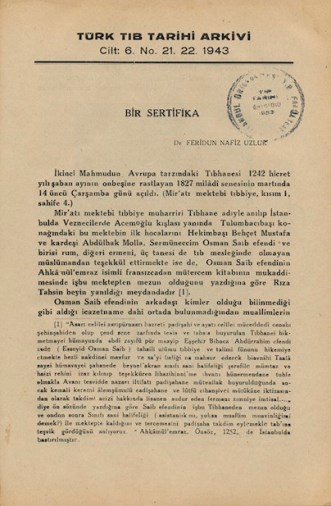 Türk Tıb Tarihi Arkivi Cilt: 6. No. 21. 22. 1943
