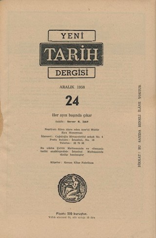 Server İskit'in Resimli Tarih Mecmuası’ndan sonra çıkardığı aylık mecmuanın değişik bir tarafı bulunmaktadır. Sahibi Server İskit, meslûl müdürü Ziya Hünerman olan mecmuanın asıl maksadı tarihe dair kitap ilaveleri vermekti. Bu suretle neşredilen kitapların en ünlüsü Resimli ve Haritalı Mufassal Osmanlı Tarihi olup altı ciltlik bu kitabın ilk dört cildi bu şekilde neşredilmiştir ve hâlen derlitoplu en iyi Osmanlı Tarihi bu kitaptır. Büyük ölçüde Kâmil Kepeci’nin lûgatinden nakledilen Resimli Osmanlı Tarihi Ansiklopedisi (Midhat Sertoğlu, İstanbul, 1958 356 s.) bu dizinin bir başka ömeğidir. İlk başlarda iki forma olan mecmua kısmı sonlarda yarım formaya (8 s.) düşmüştür. Bu arada 36. sayıda (Aralık, 1959) mes'ûl müdürü Temel İskit olmuştur.